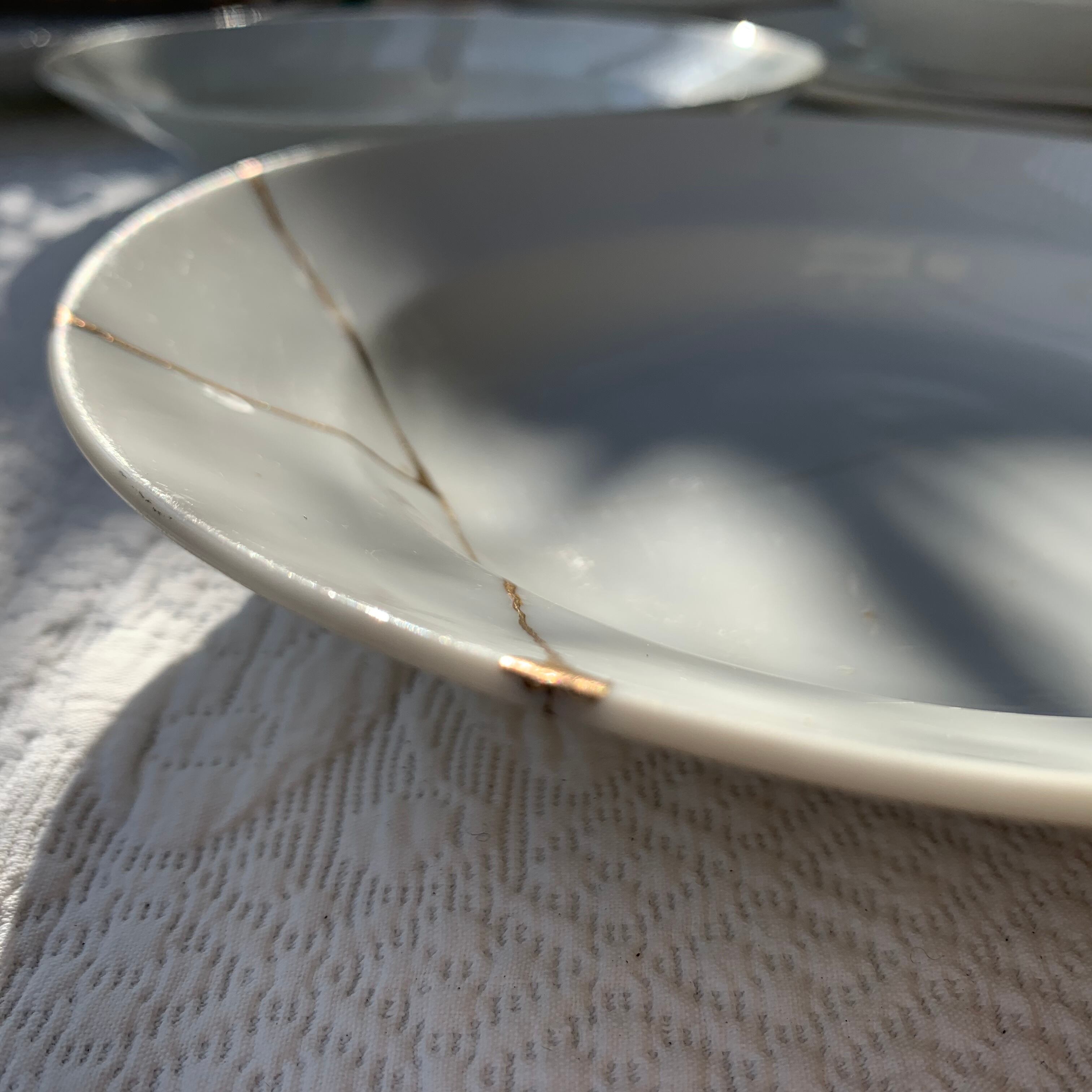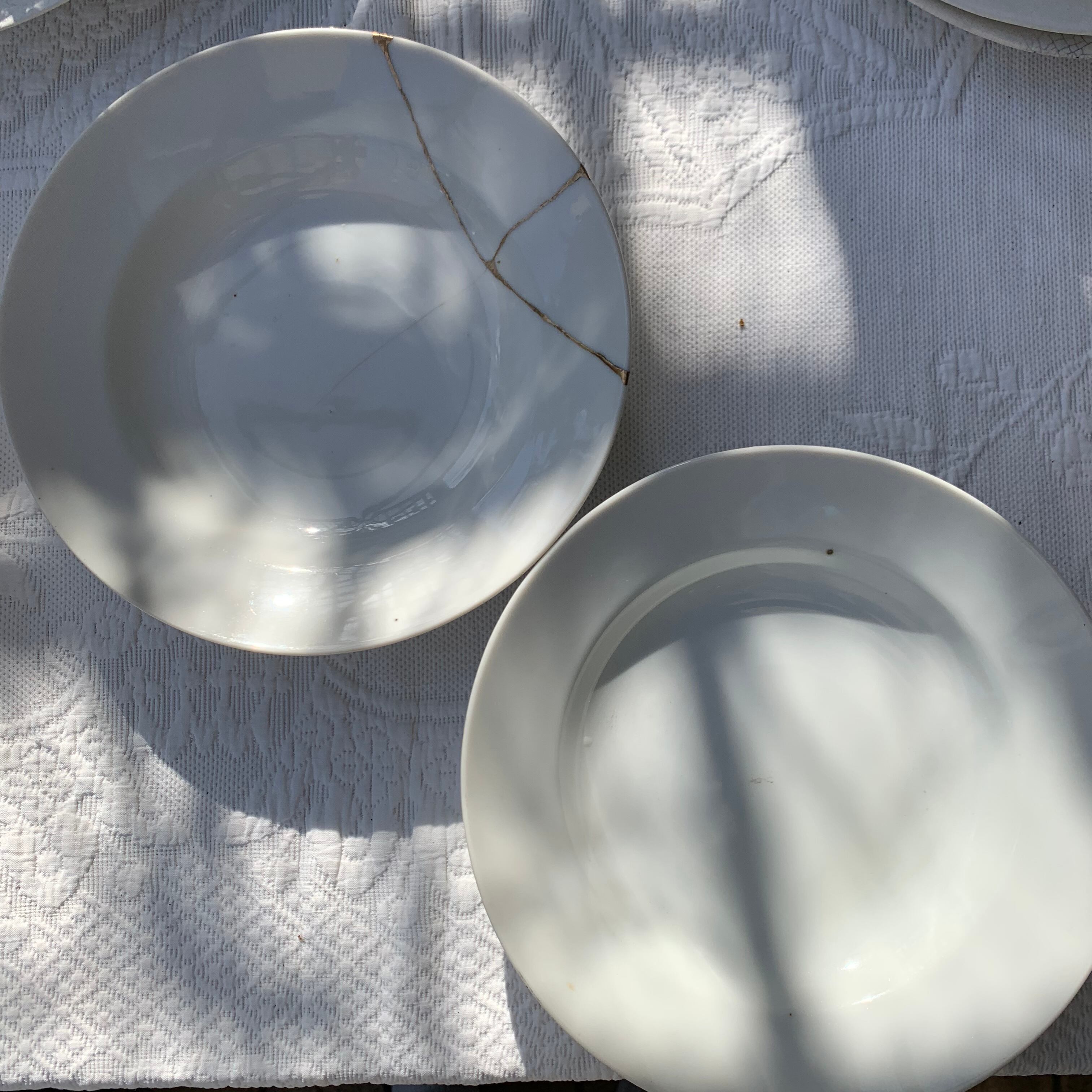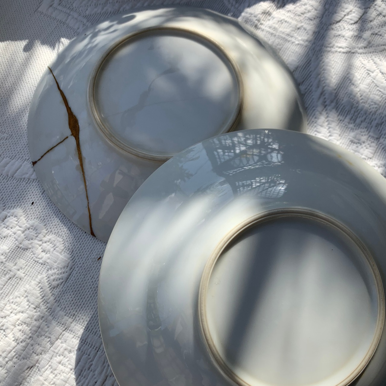 フランス 白 陶器 スープ 皿 アンティーク 2枚 金継ぎ