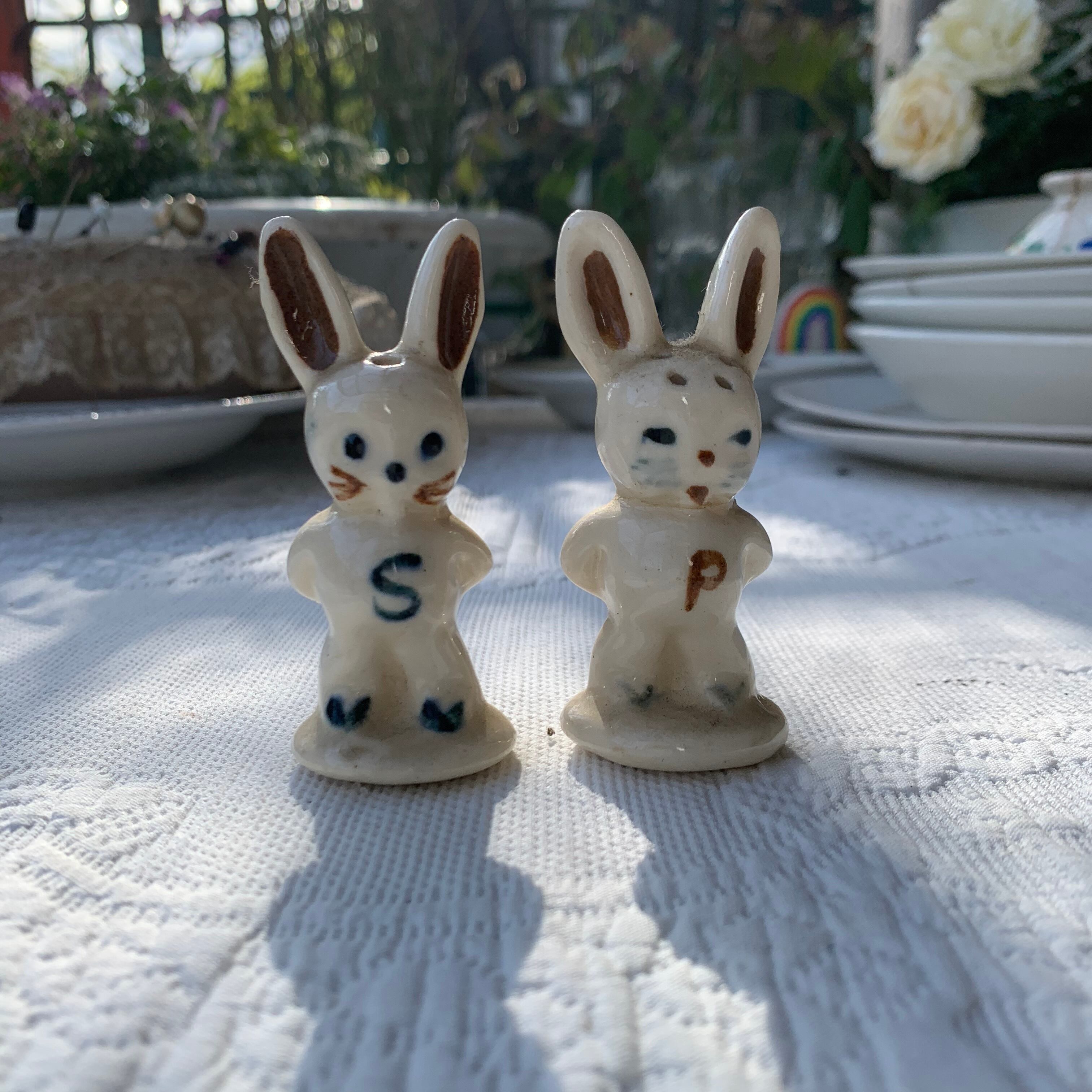 うさぎ アンティーク おきもの 陶製 アメリカ ソルト&ペッパー