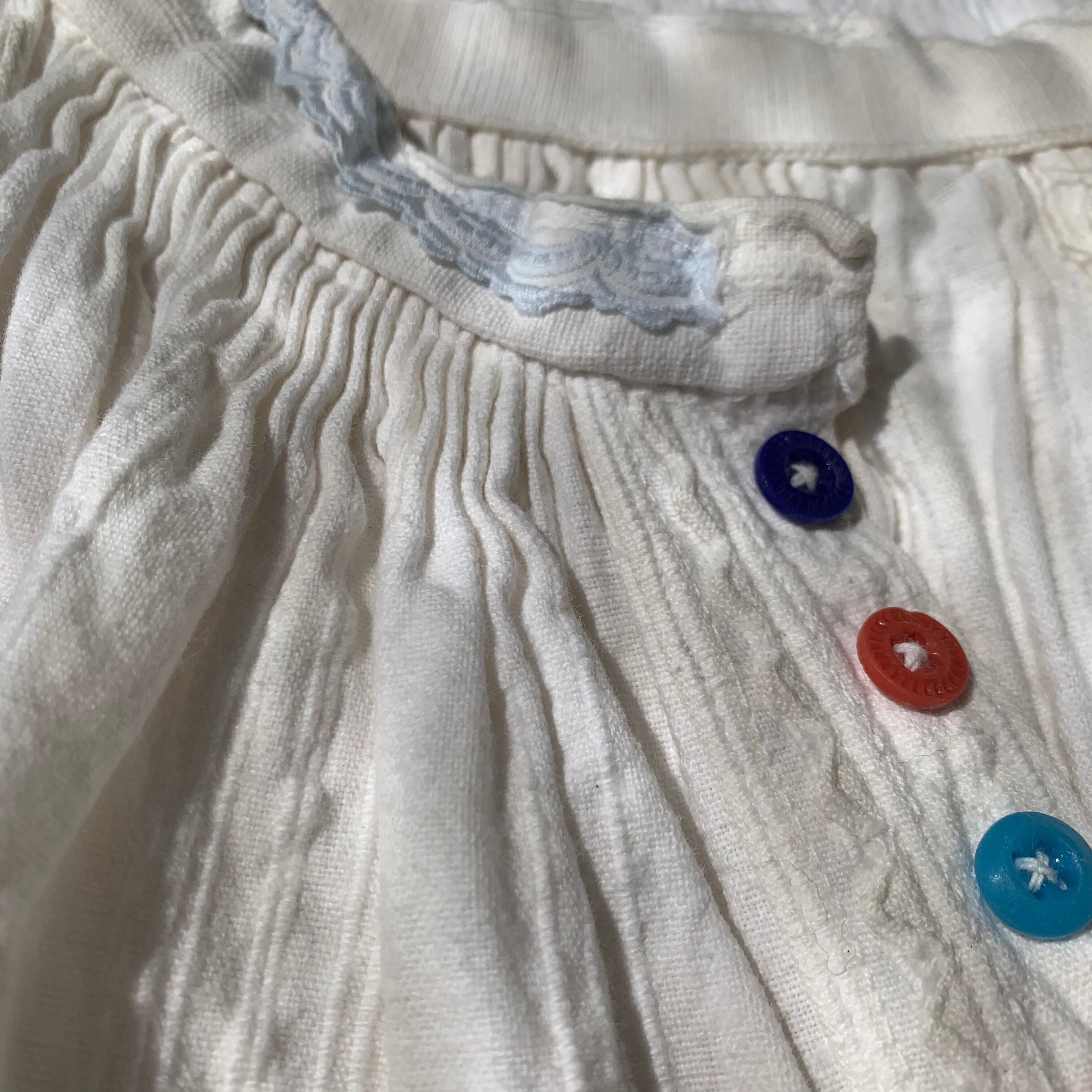 チェコスロバキアのヴィンテージブラウス。 生地をたっぷり使って、 タック、ギャザー、たっぷり。 襟元、袖口、ボタンもかわいい。