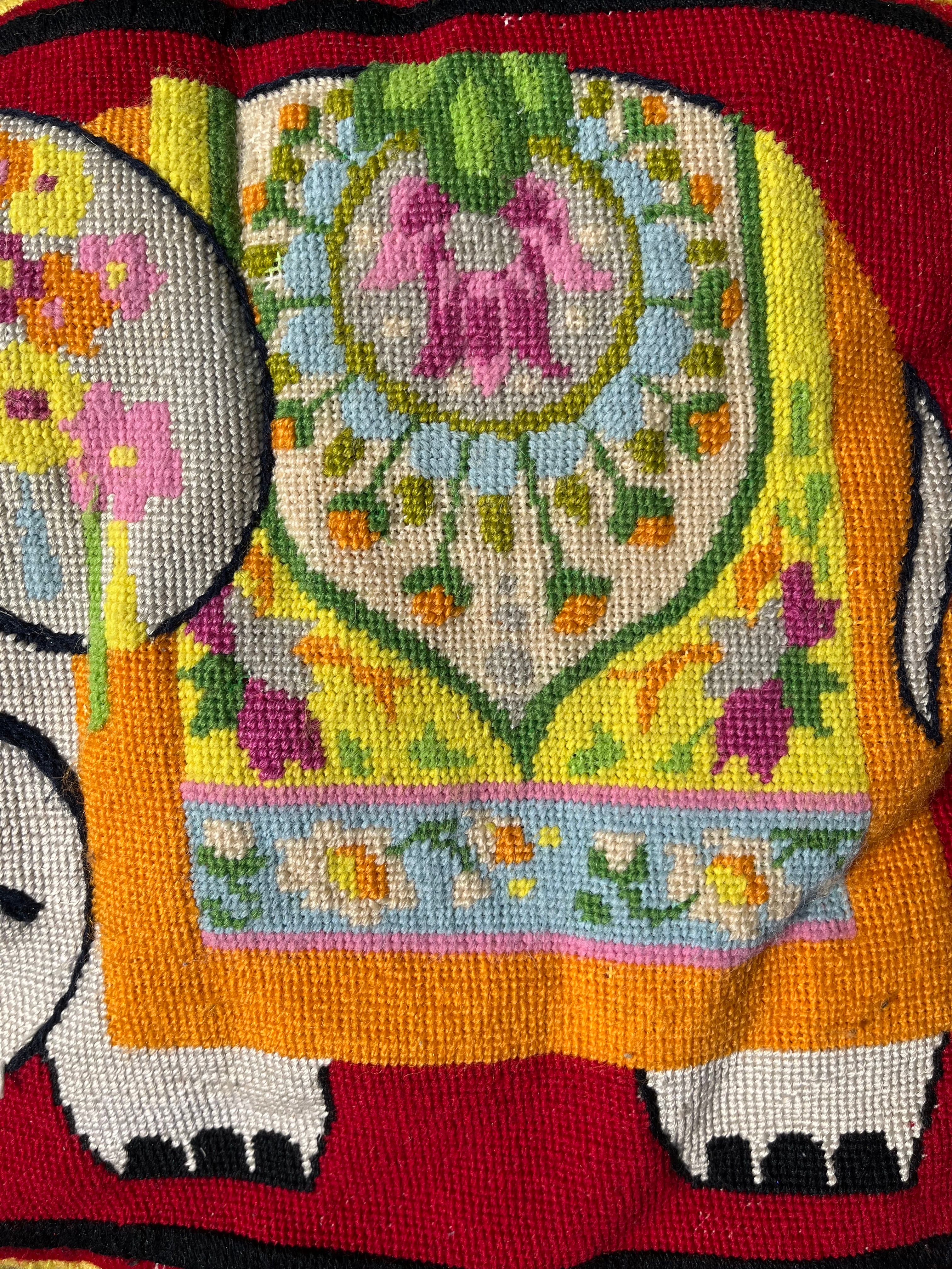 ゾウさん クッション 刺繍 アンティーク ヴィンテージ